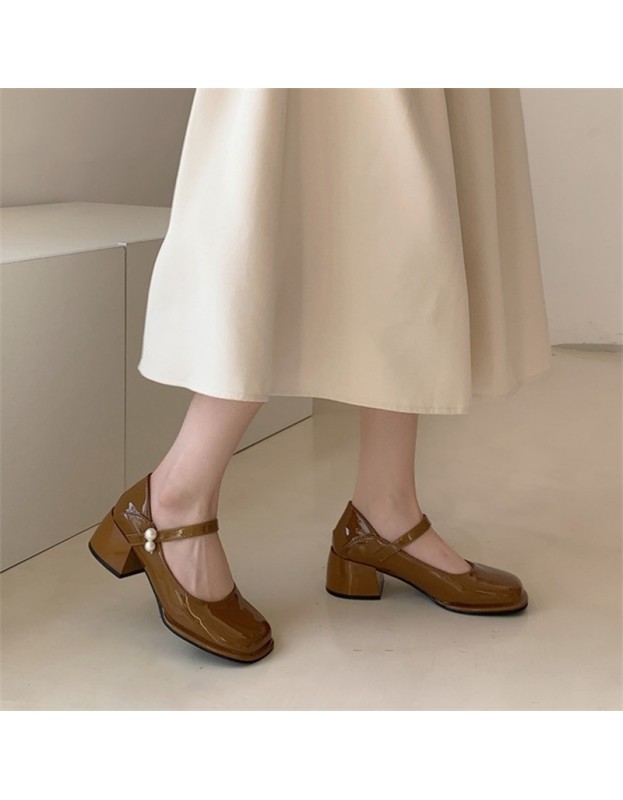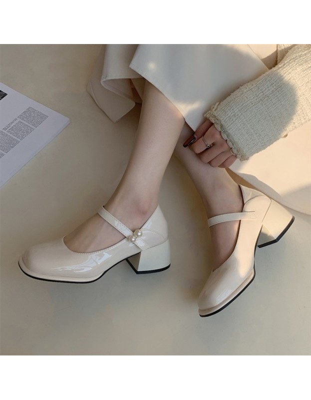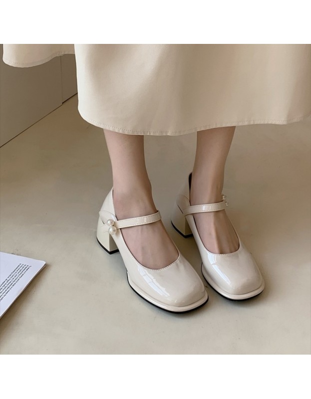 Single Shoes Women's Middle Chunky Mary Jane Women's Shoes Elegant Lady Small Leather Shoes High Heels